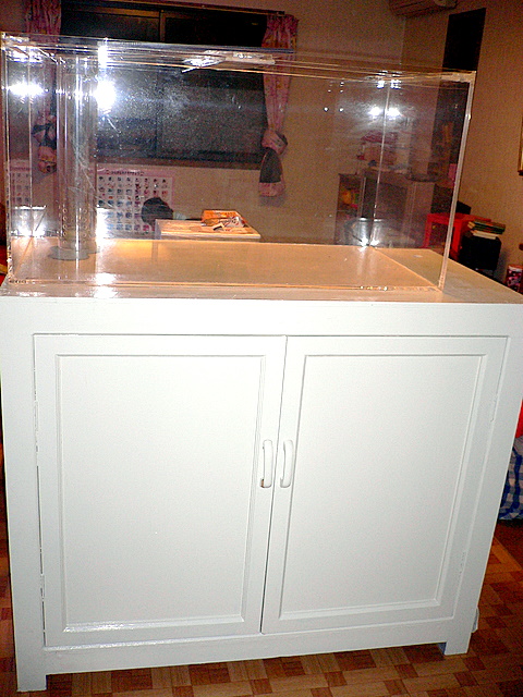 で、月曜日に水槽台をペンキで塗っていたわけです^^